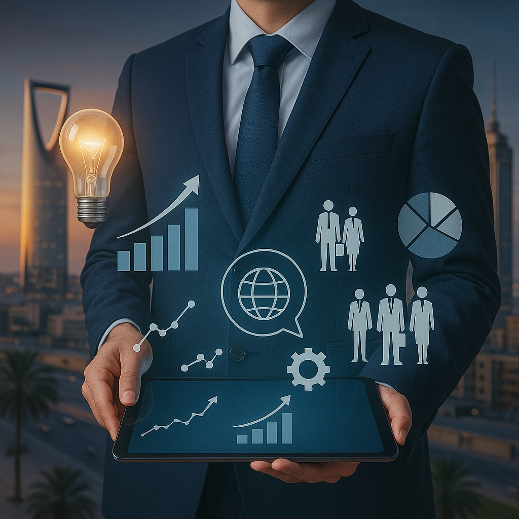 شركة رائدة ومتخصصة في تقديم مختلف خدمات الأعمال المالية والإدارية والاستشارية، بالإضافة إلى متابعة الأعمال وإعداد التقارير للإدارة العليا بأسلوب موثوق ومستدام. وتقدم الشركة خدماتها للقطاعين الحكومي والخاص بهدف تمكينهما من تحسين الأداء وتحقيق نمو مستدام في أعمالهما.